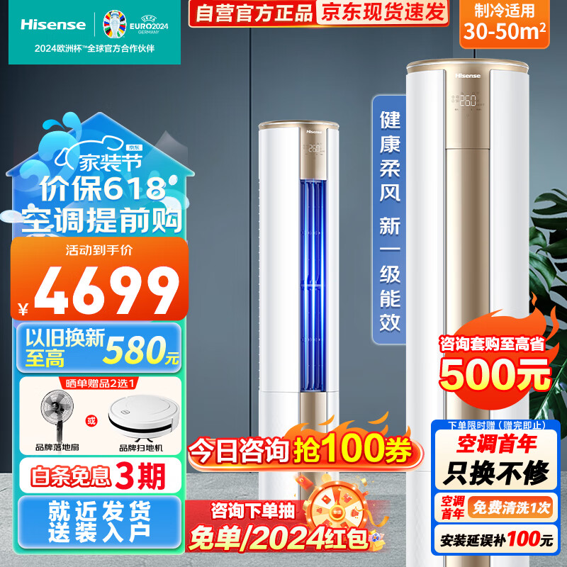 海信(Hisense)空调柜机3匹新一级能效变频冷暖柔风感自清洁app智控圆柜立柜式客厅空调KFR-72LW/E500-A1价格:4699.00元!