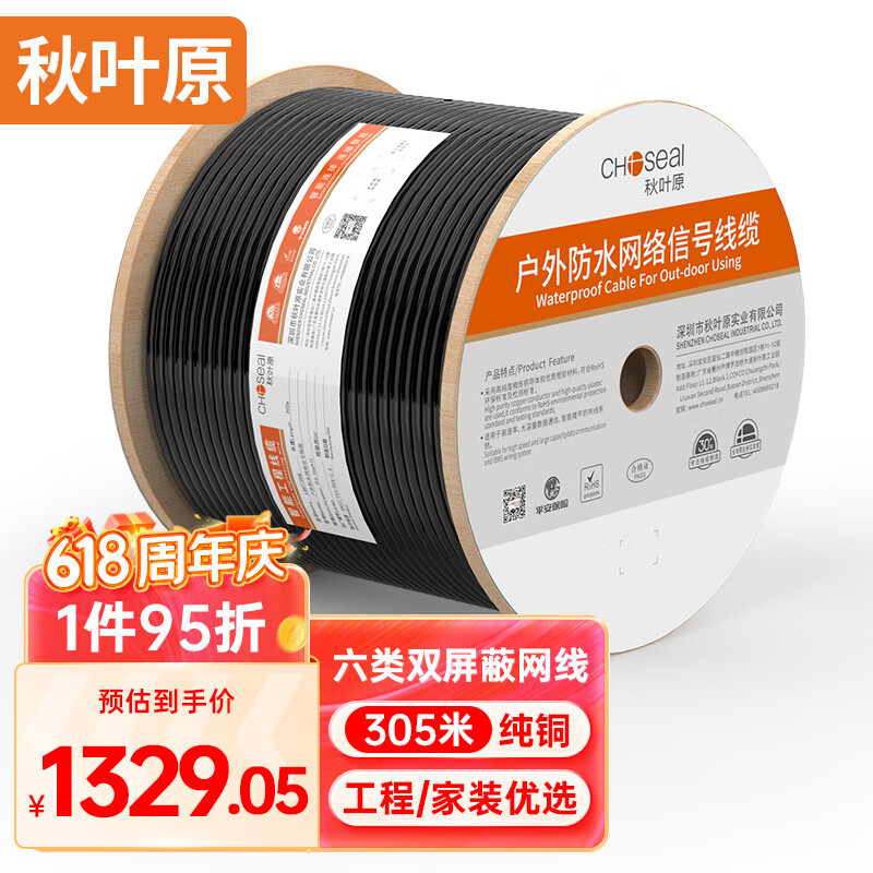 秋叶原(CHOSEAL)六类网线【商用版】室外防水双屏蔽千兆网线黑色305米 LDN7726MT305价格:1399.00元!