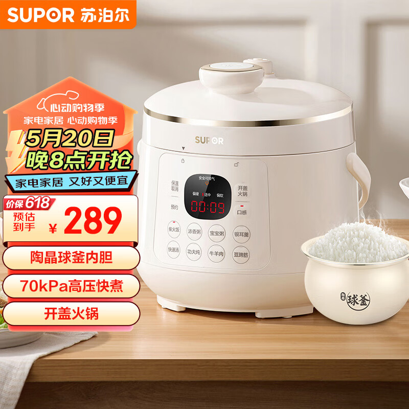 苏泊尔一人食迷你电锅2.3L 开盖火锅家用智能白陶晶内胆煲汤宝宝粥23YC2318Q高压锅1-3人价格:286.00元!