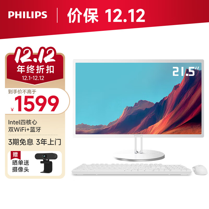 飞利浦S9 21.5英寸一体台式机电脑 商用家用学习办公门店收银主机(11代4核N5095 8G 256GSSD WiFi)白色价格:1599.00元!