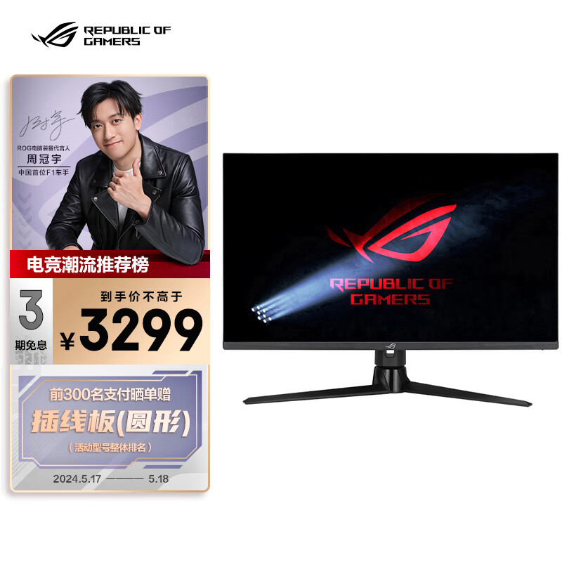 华硕ROG XG32AQ绝神32英寸2K 144Hz电竞显示器超频175Hz FastIPS 1ms响应G-SYNC无撕裂HDR600价格:3399.00元!