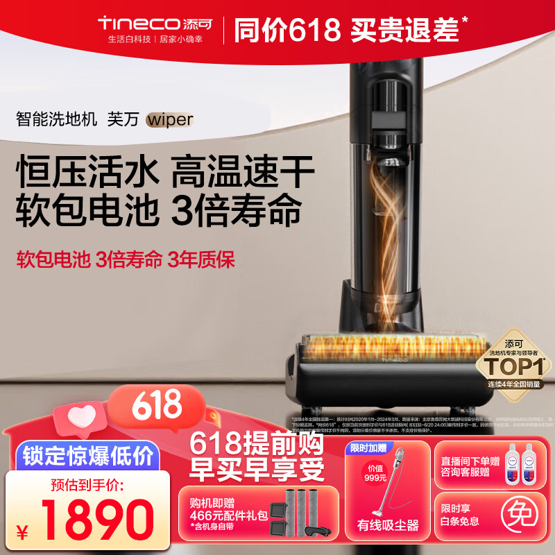 添可(TINECO)无线智能洗地机芙万Wiper高温全链极速干恒压活水双贴边自清洁家用吸尘吸拖扫一体机价格:2290.00元!