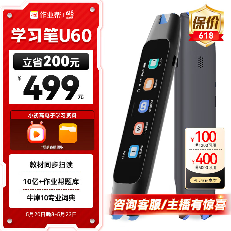作业帮全科学习笔U60 小初高英语点读笔学习机词典笔翻译笔中英文翻译机 10亿+题库6000W词库 3.3英寸屏价格:499.00元!
