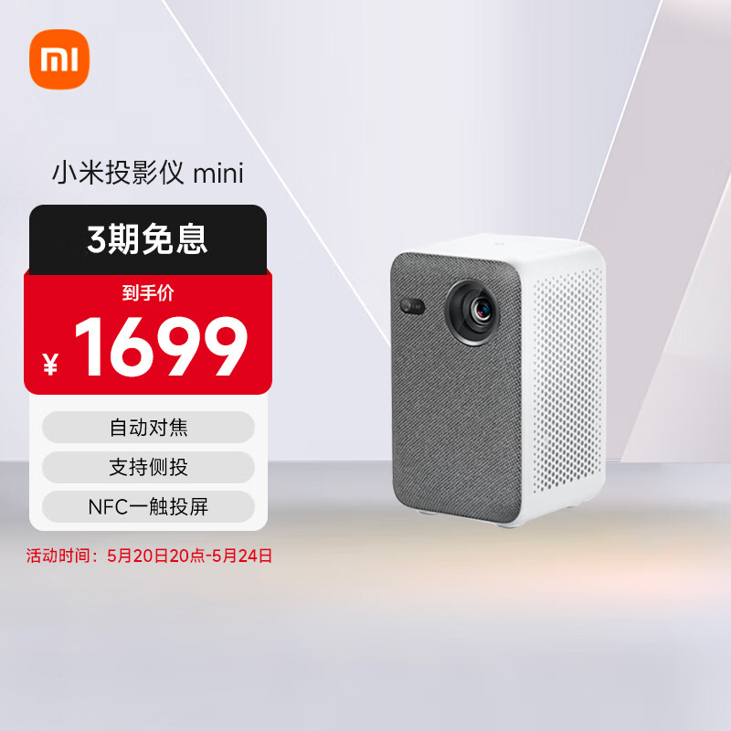 小米投影仪mini 投影仪家用 家庭影院 (自动对焦 支持侧投 NFC一触投屏 内置电池续航2h以上)价格:1699.00元!