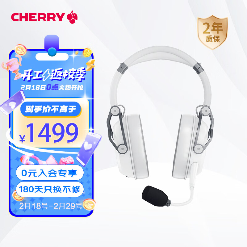 CHERRY樱桃(Cherry)HC8.2 游戏耳机 7.1环绕音效 头戴式耳机 HD耳麦 电竞耳机 FPS耳机 LOGO灯效 白色价格:1599.00元!