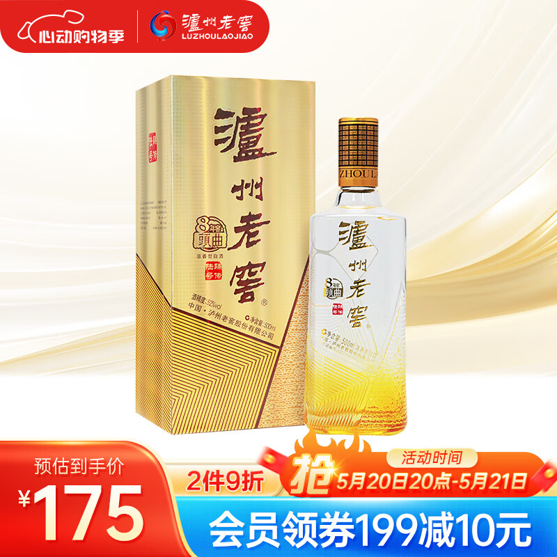 泸州老窖 八年窖头曲 臻传陆号 浓香型白酒 52度500ml 单瓶装价格:175.00元!