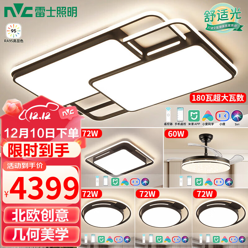 雷士(NVC)LED后现代LED吸顶灯大气北欧创意 房间灯智能Ra95-拾艺智控大尺寸价格:4899.00元!