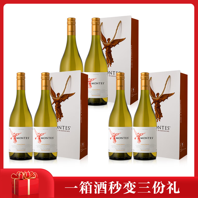 MONTES蒙特斯红天使珍藏莎当妮葡萄酒 智利进口红酒750ml整箱6支装价格:735.00元!