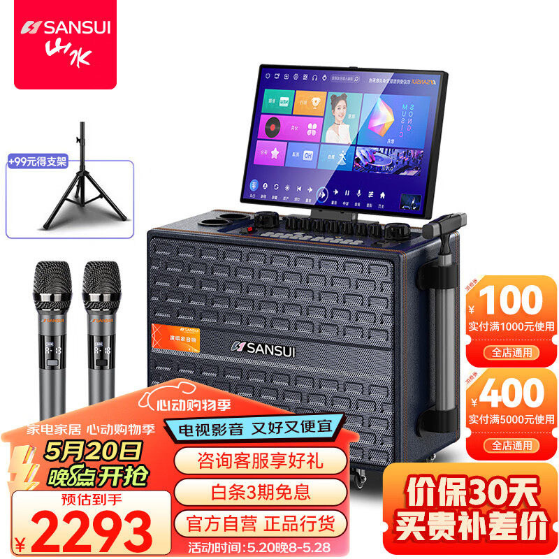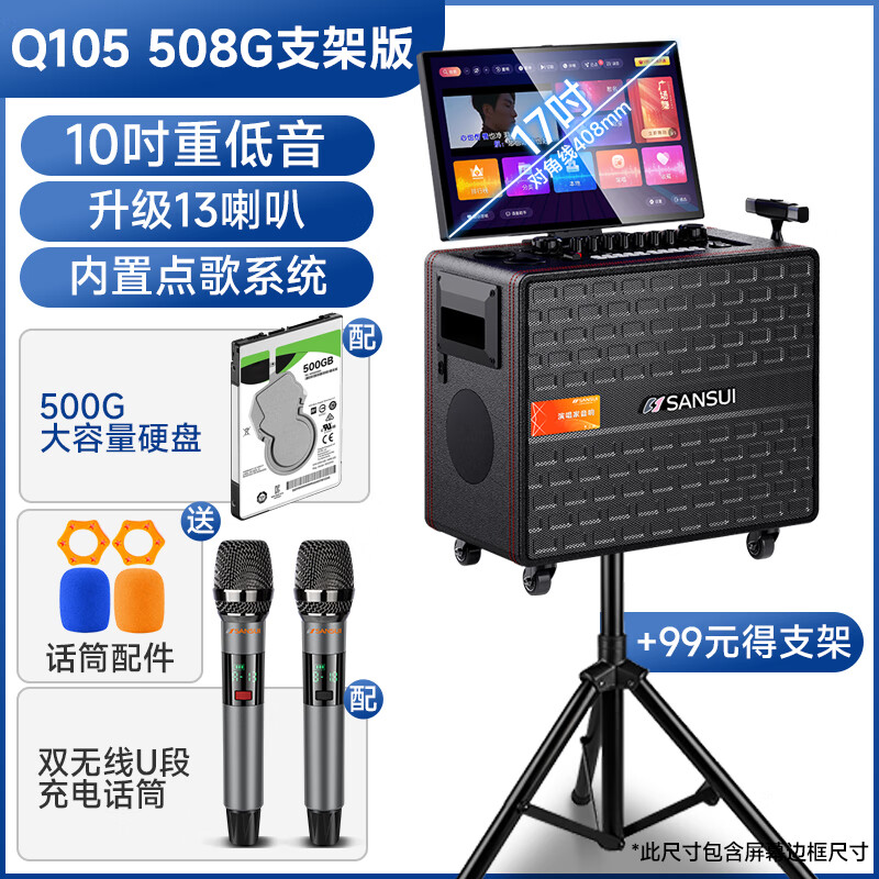 山水(SANSUI)Q105 家庭ktv音响套装 广场舞户外便携家用卡拉ok点歌机一体机视频机 移动K歌蓝牙音箱低音炮价格:2613.00元!