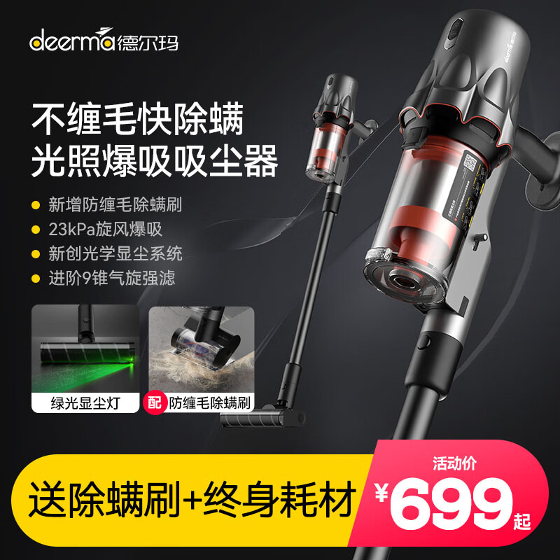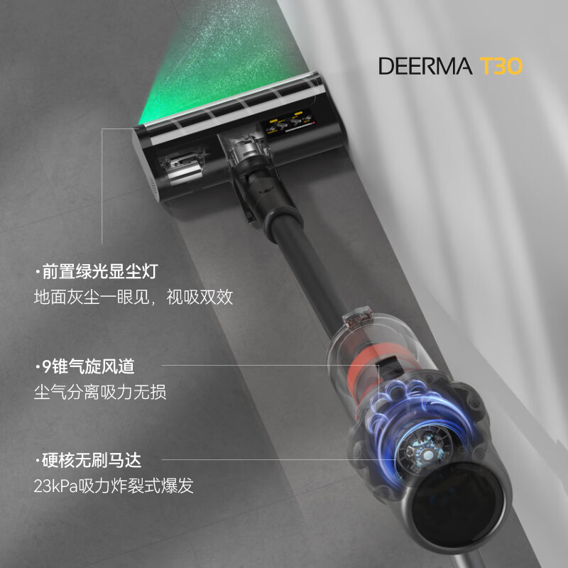 德尔玛(Deerma)T30无线吸尘器升配版 家用吸尘器无线 光学显尘灯家车两用无线 家/车/宠物大吸力手持除螨刷价格:699.00元!