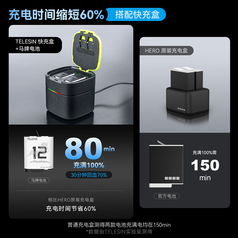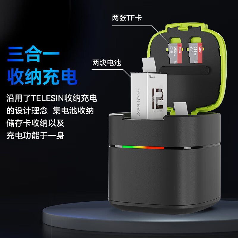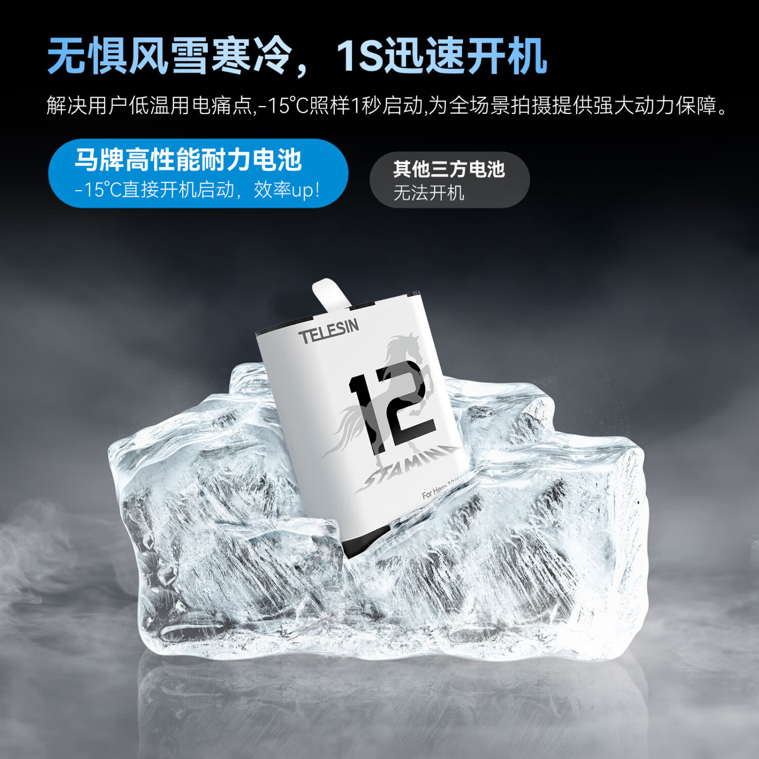 TELESIN(泰迅)适配gopro12电池充电器gopro11 10 9高性能电池低温启动30w快充 一电一充套装价格:250.20元!
