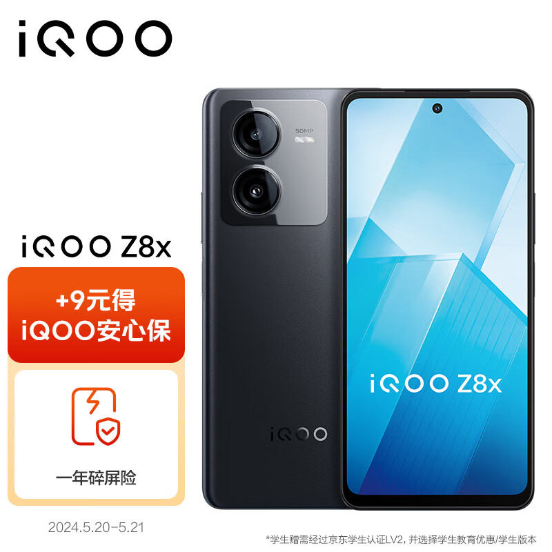 vivo 【iQOO安心保-一年碎屏保】 iQOO Z8x 8GB+256GB 曜夜黑 6000mAh巨量电池 骁龙6Gen1 5G手机价格:1408.00元!