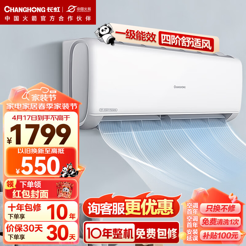 长虹(CHANGHONG)大一匹新一级熊猫懒变频冷暖独立除湿空调挂机卧室挂式智能电量查询 KFR-26GW/ZDCSW1+R1价格:1799.00元!