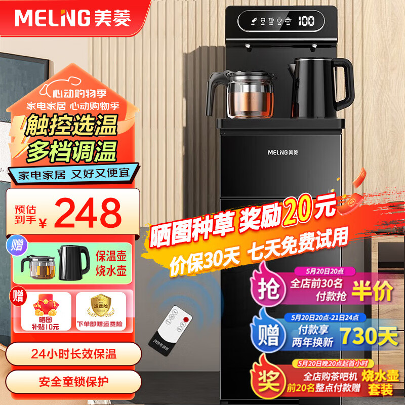 美菱(MeiLing)茶吧机 家用多功能智能遥控大屏一键选温立式下置式饮水机 【温热款】一键选温MY-C221A价格:268.00元!