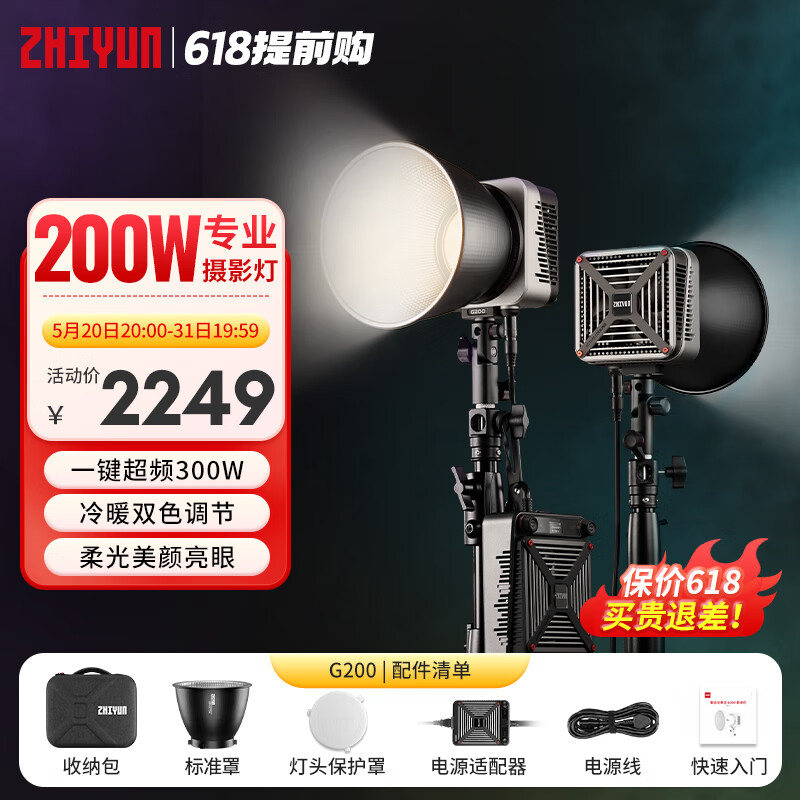 zhi yun智云G200补光灯 直播补光灯手持摄影打光灯led相机柔光灯rgb拍摄电影便携小型设备户外常亮灯300w价格:2249.00元!