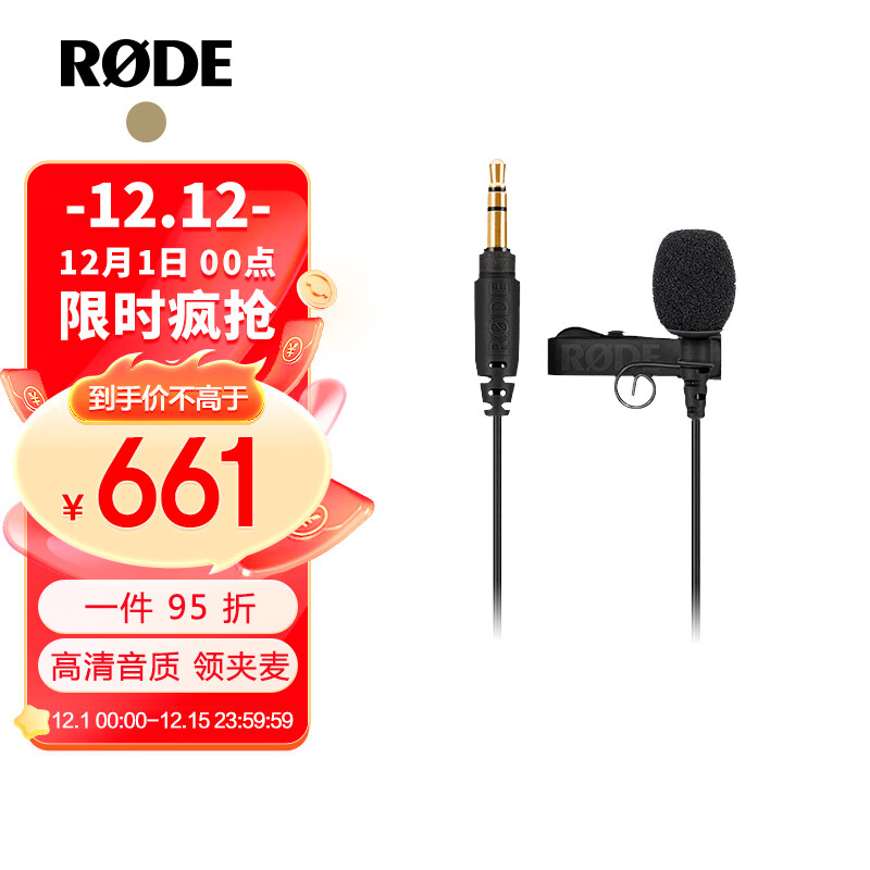 RODE 罗德 Lavalier GO 领夹麦克风 适用于单反微单相机以及WirelessGo话筒(官方标配)价格:695.00元!