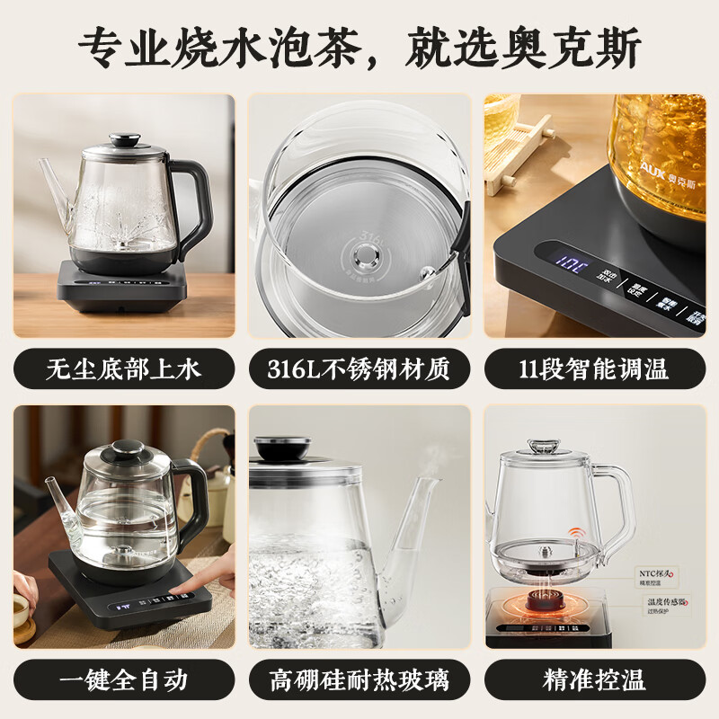 奥克斯自动上水电热烧水壶玻璃烧水器茶台专用一体茶桌茶几调温泡茶具围炉电茶盘电茶炉茶具13ASDS06价格:179.00元!