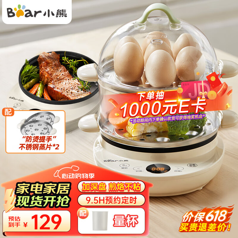 小熊(Bear)煮蛋器 双层家用多功能蒸蛋器 不粘锅煎蛋器 可预约定时自动断电蒸锅 ZDQ-B14V2价格:139.00元!