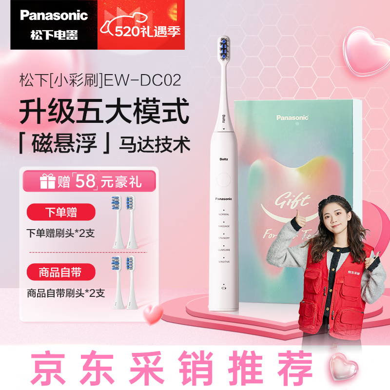 松下(Panasonic) 电动牙刷小彩刷情侣款 软毛成人磁悬浮声波震动清洁护龈 情人节520礼物送男友送女友DC02白色价格:179.00元!