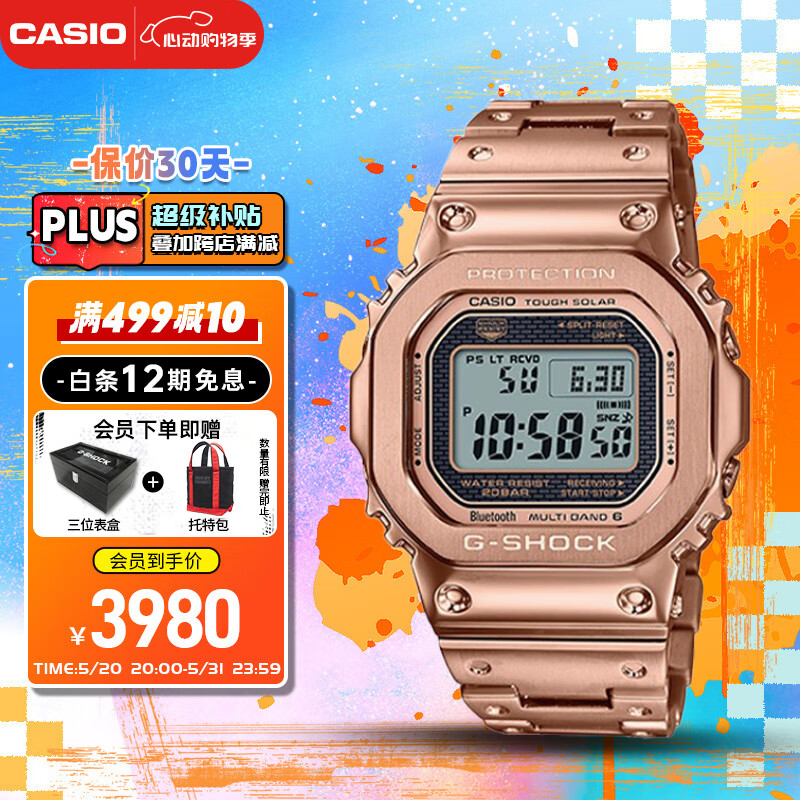 卡西欧(CASIO)手表男士经典小方块G-SHOCK运动电子表520礼物GMW-B5000GD-4PRT价格:3990.00元!