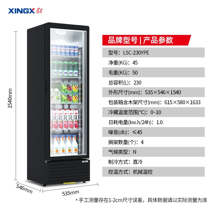 星星(XINGX)展示柜冷藏饮料柜一级能效单门立式冰柜商用保鲜冰箱风冷直冷超市便利店陈列柜啤酒水果柜 直冷省电 1级能效222升 LSC-230YPE价格:1299.00元!