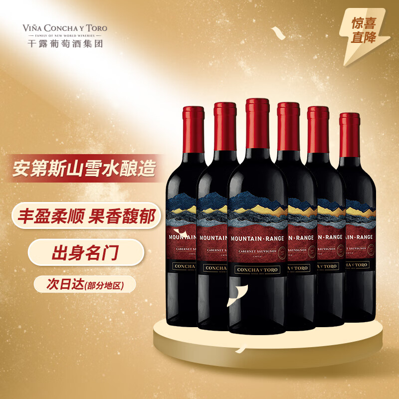 Concha y Toro干露云巅赤霞珠干红葡萄酒 750ml*6瓶整箱装 智利进口红酒价格:199.00元!