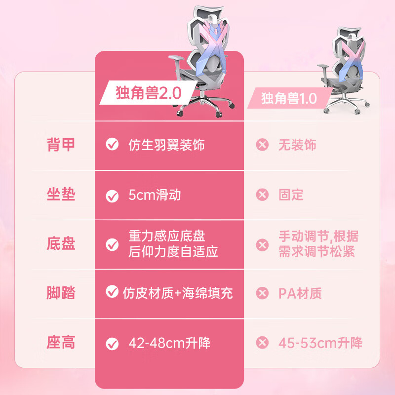 骁骑X5S独角兽2.0粉色女生款人体工学电竞椅家用电脑椅办公游戏椅价格:2149.00元!