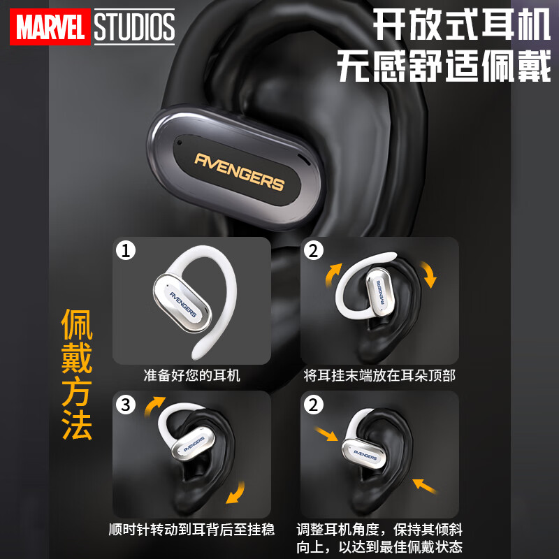 迪士尼漫威蓝牙耳机挂耳式骨传导概念OWS开放式不入耳运动跑步立体音效适用于华为苹果MV-YC08冰甲钢铁侠价格:119.00元!