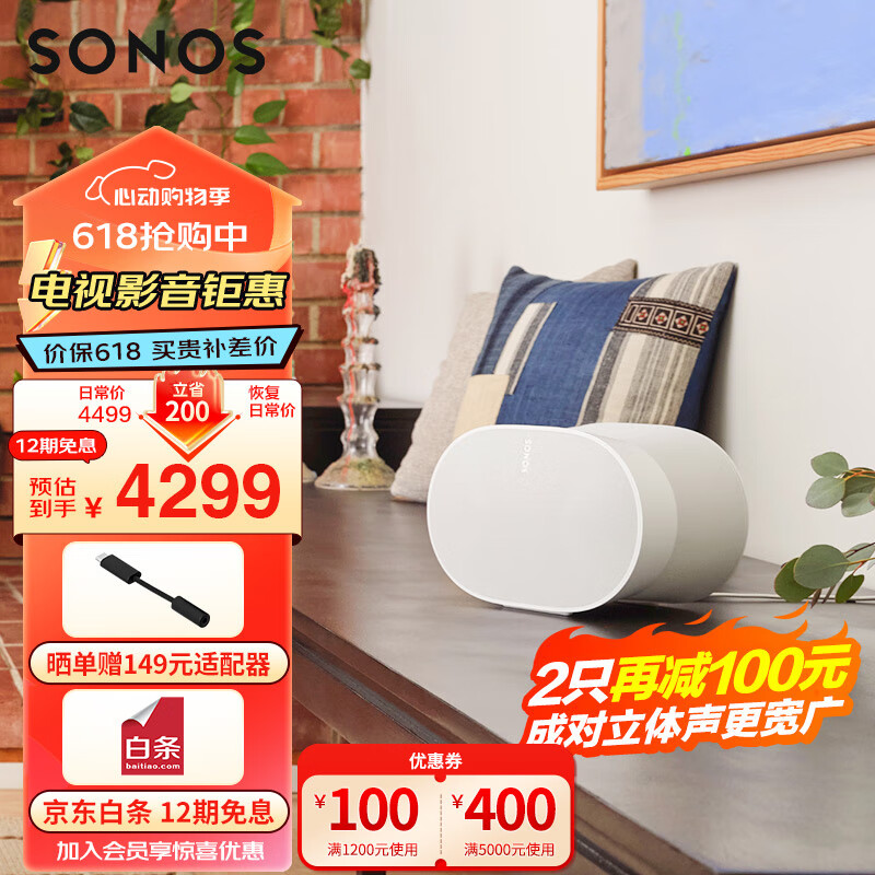 SonOS Era300 杜比全景声 WIFI无线蓝牙 环绕可组合 家庭影院 迷你音响 家用桌面客厅卧室 白色价格:4299.00元!
