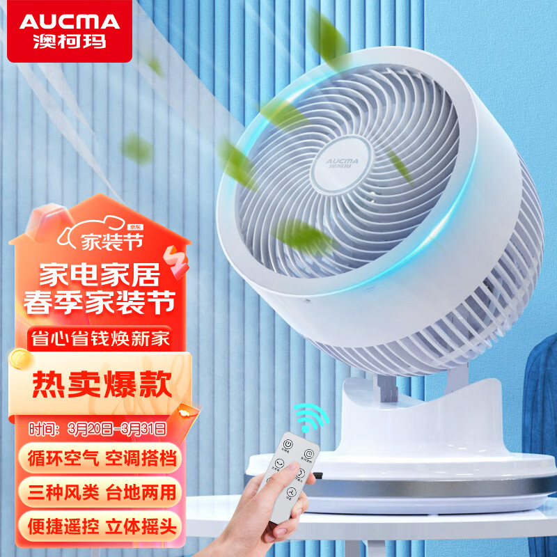 澳柯玛(AUCMA)电风扇/空气循环扇/遥控直流变频小风扇/广角摇头家用四季扇 KYT-15B933(Y)价格:237.40元!