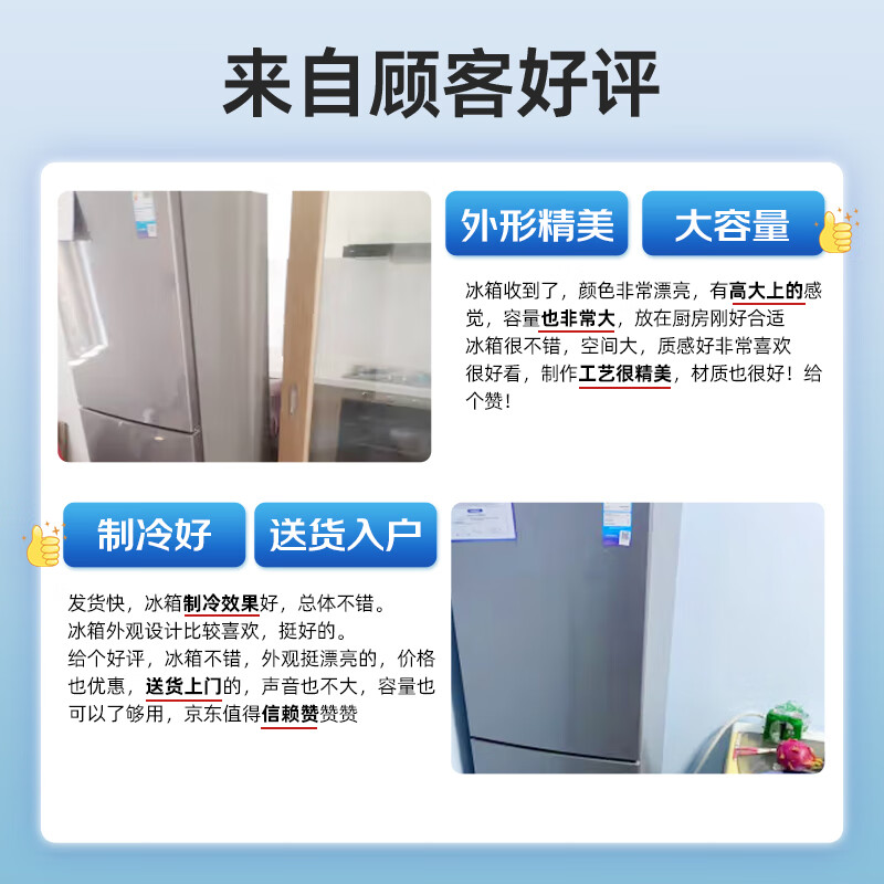 真的要说美的BCD-215TM外观我比较的喜欢,质量非常的好,物流速度快,包装完好无损,整个购物体验非常满意。