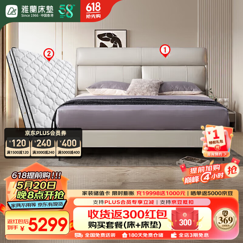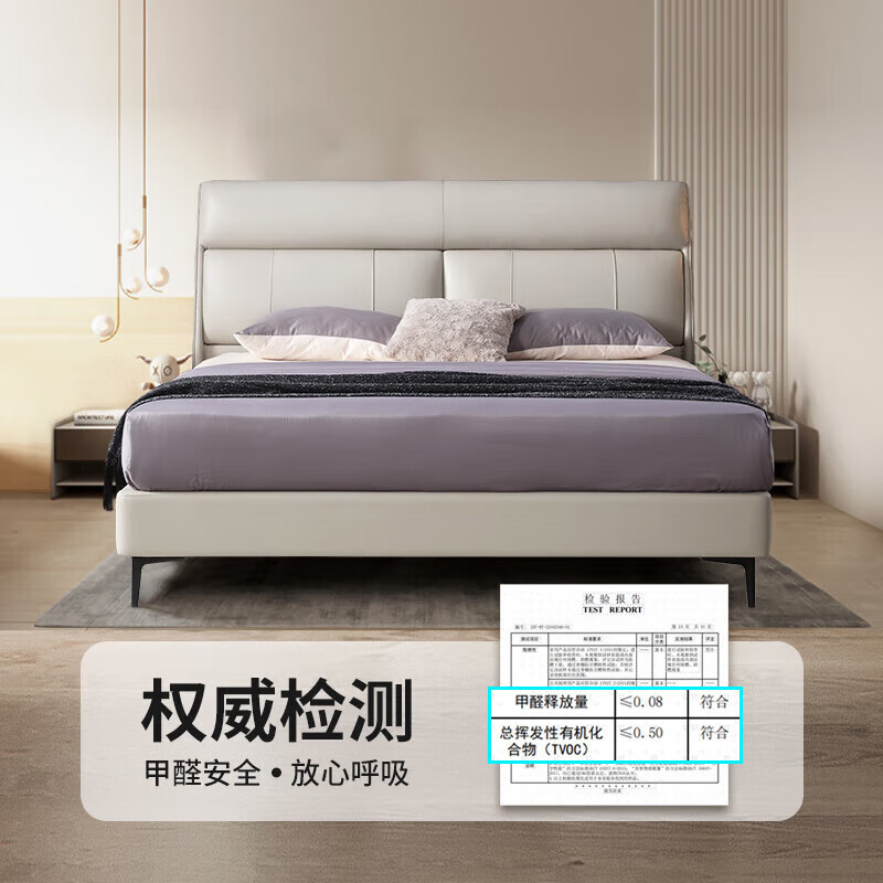 雅兰简约风真皮床主卧靠背可调节双人皮艺床 套餐 伯明翰 1.8*2米价格:6599.00元!