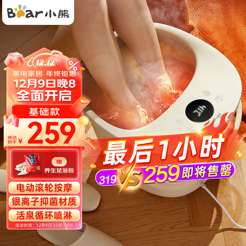 小熊(Bear)泡脚桶 全自动足浴盆足浴桶 银离子洗脚盆泡脚盆电动按摩恒温加热洗脚桶 生日礼物ZYP-E05Q1价格:319.00元!