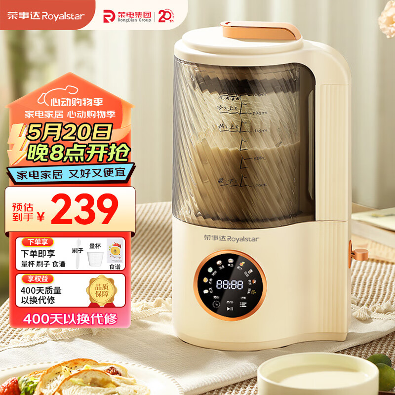 荣事达(Royalstar)破壁机家用豆浆机加热多功能低音降噪榨汁机料理机绞肉机婴儿辅食机RZ-625A价格:239.00元!