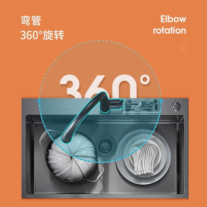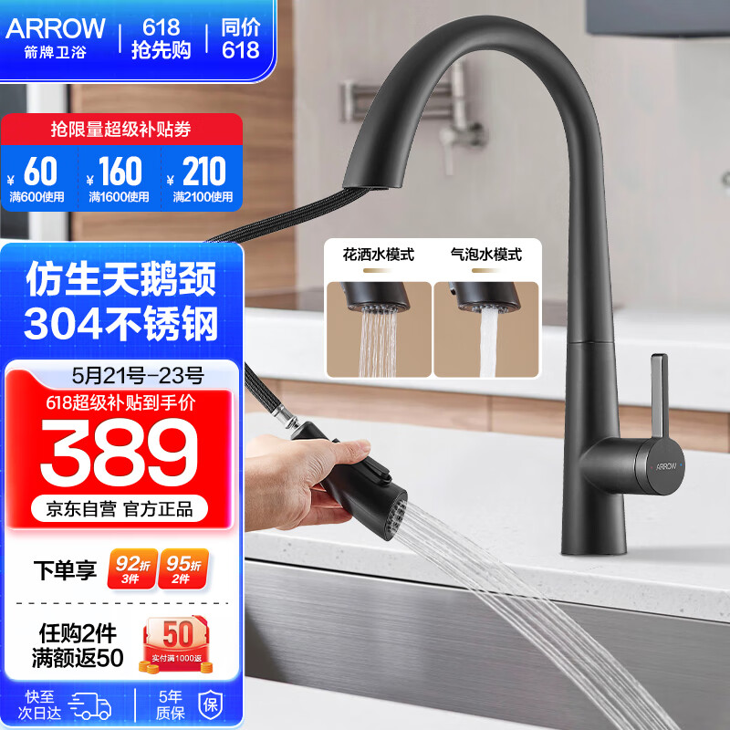 箭牌(ARROW)304不锈钢厨房冷热抽拉式水龙头洗碗盆洗菜盆洗碗槽水槽防溅龙头 【双模出水】天鹅颈抽拉龙头价格:389.00元!
