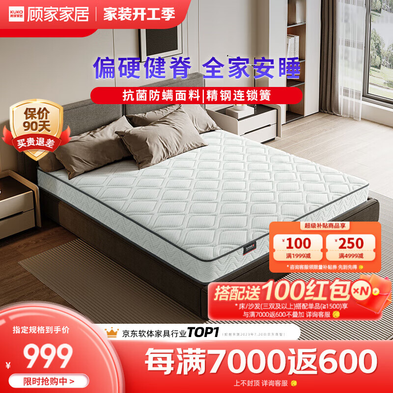 顾家家居(KUKA)抑菌防螨整网弹簧海绵床垫1.5x2米M0085A价格:999.00元!