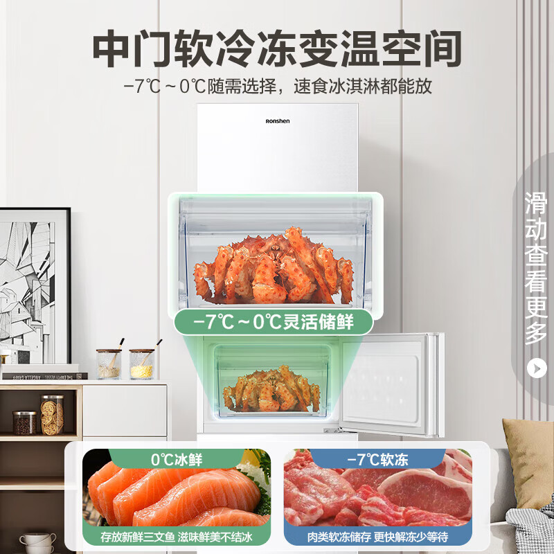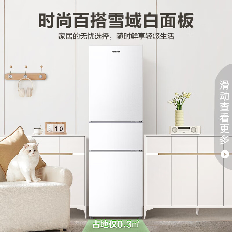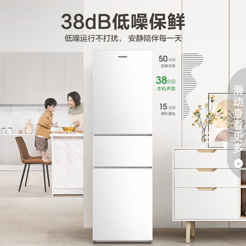 容声(Ronshen)218升三门小型电冰箱白色中门软冷冻三温区保鲜节能省电低噪家用租房宿舍小巧不占地BCD-218D11N价格:1099.00元!