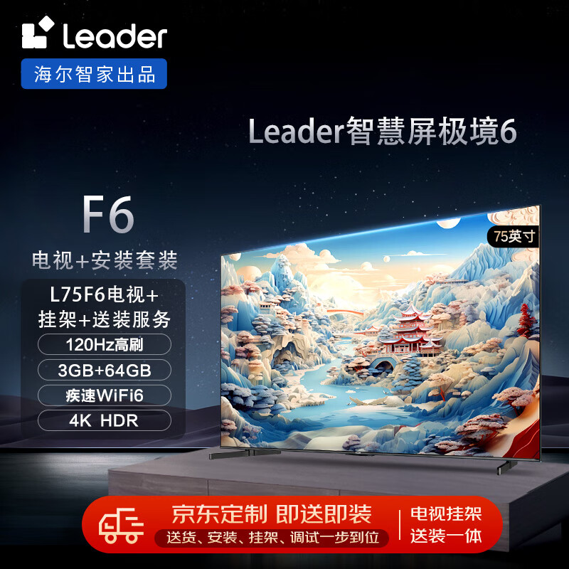 Leader安装套装-海尔智家出品75英寸3G+64G大内存疾速Wifi6小超跑智慧屏L75F6+安装服务【送装一体】价格:3199.00元!