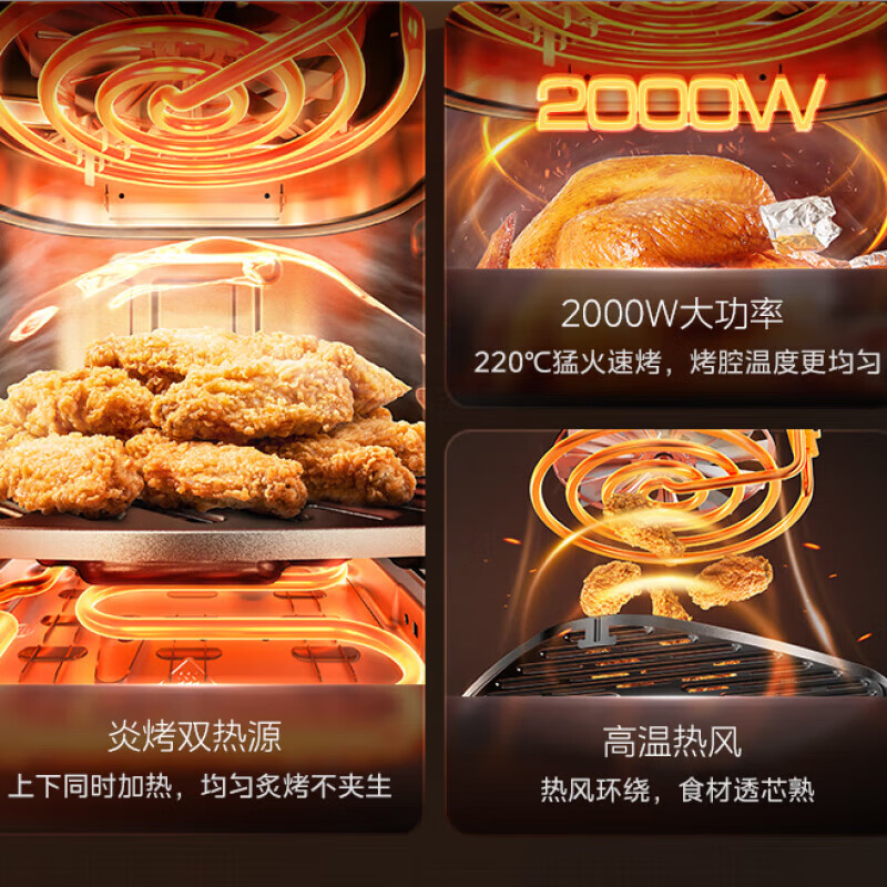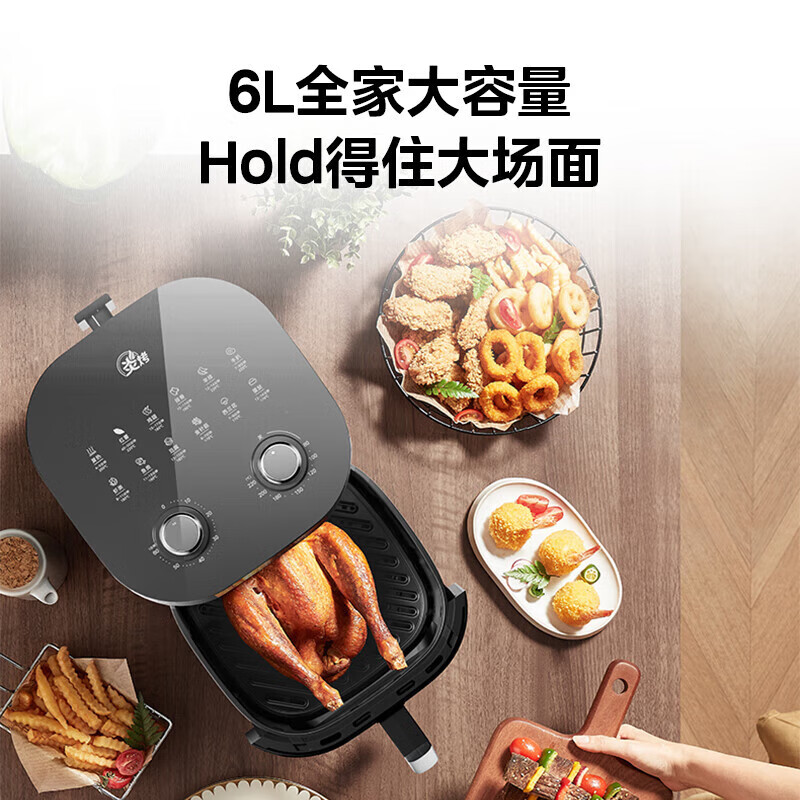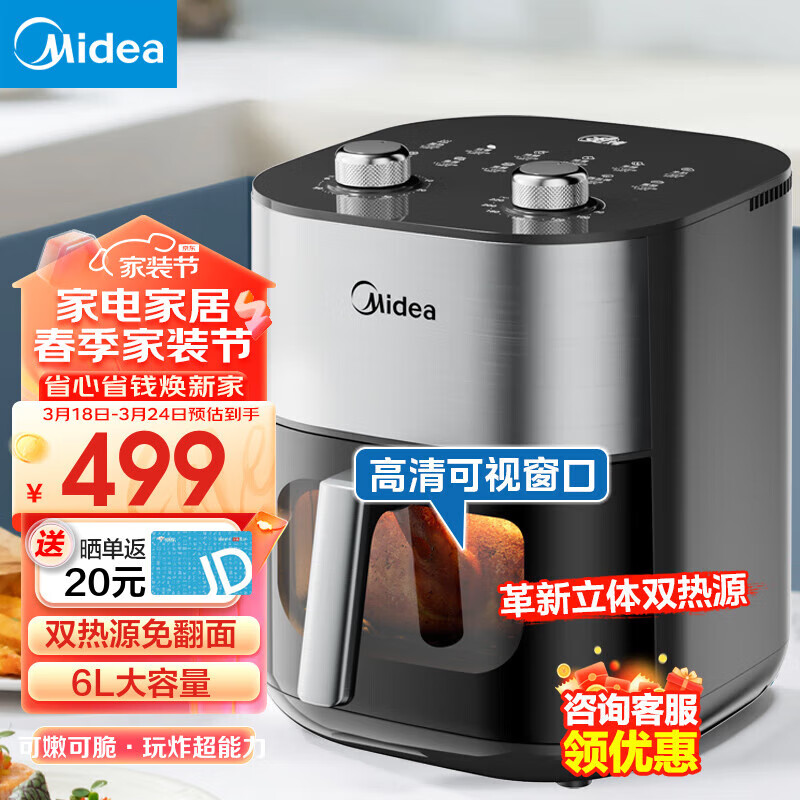 美的(Midea)空气炸锅家用 5升可视炸锅不用翻面 微蒸汽多功能智能双旋控温 电炸锅 KZE6015炎烤系列丨可视免翻面 6L 5L价格:599.00元!