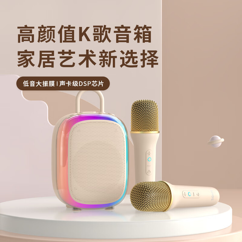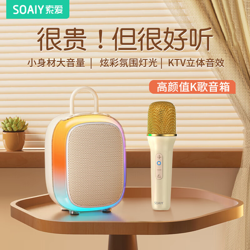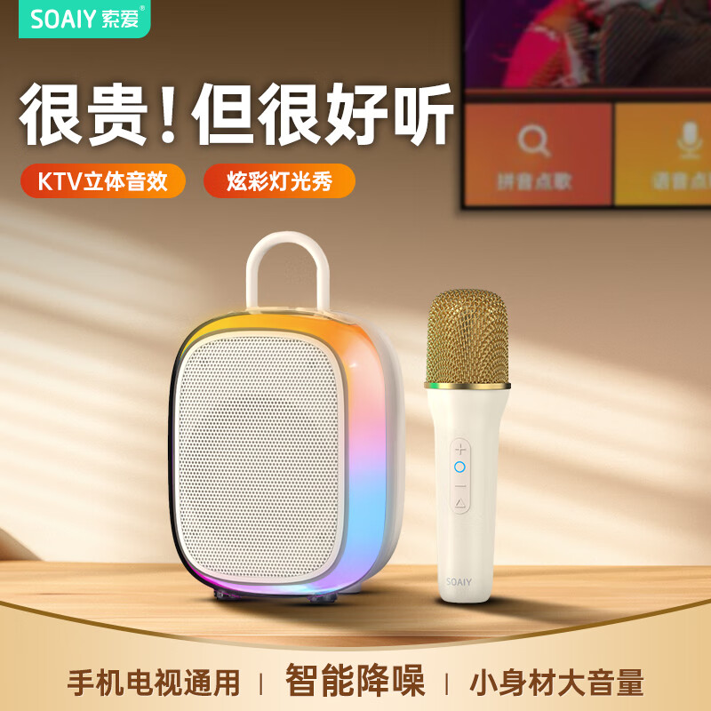 索爱(soaiy)话筒音响一体自带声卡k歌麦克风家庭ktv音响套装无线蓝牙音箱神器电视儿童娱乐点歌SK68油彩白单麦价格:143.00元!