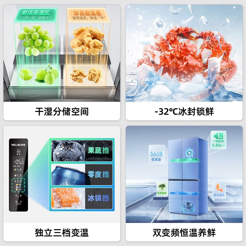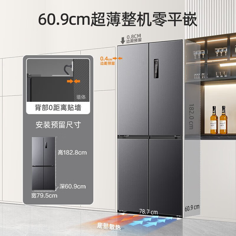 美菱420升十字对开四门冰箱多门一级双变频超薄嵌入式风冷家用底部散热电冰箱 BCD-420WP9CZX 神秘灰价格:3599.00元!