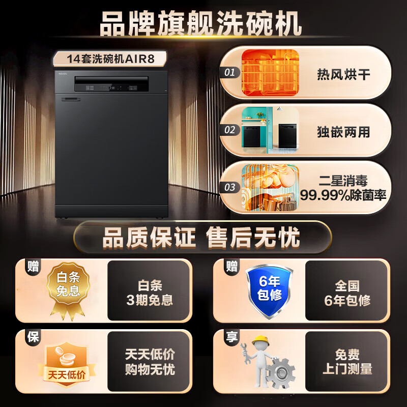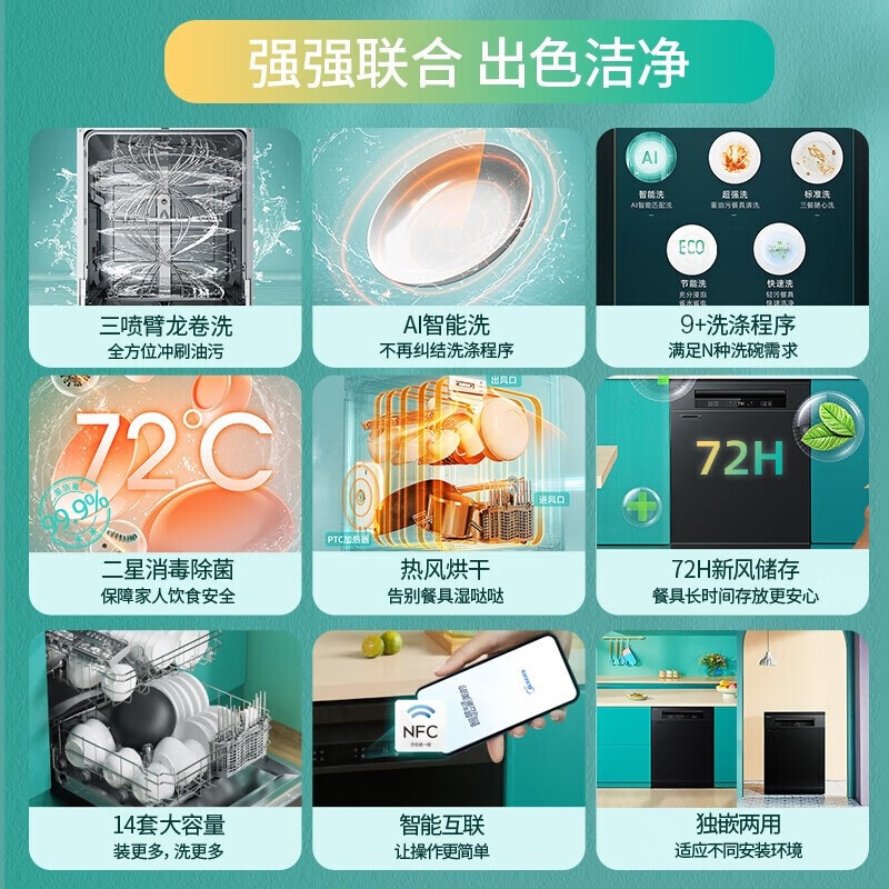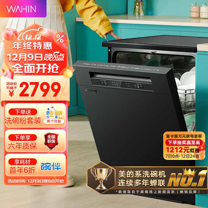 华凌 美的出品 洗碗机家用14套 嵌入式独立式 全新热风烘干智能油污感应 高温除菌二星消毒全自动AIR8价格:2799.00元!