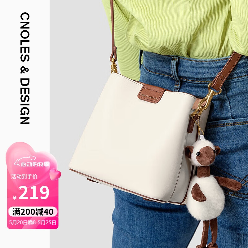 蔻一(Cnoles)水桶包女士包包牛皮单肩包女款高端品牌大容量斜挎包女式百搭背包实用走心生日520情人节礼物送女朋友老婆 阳光暖白价格:259.00元!