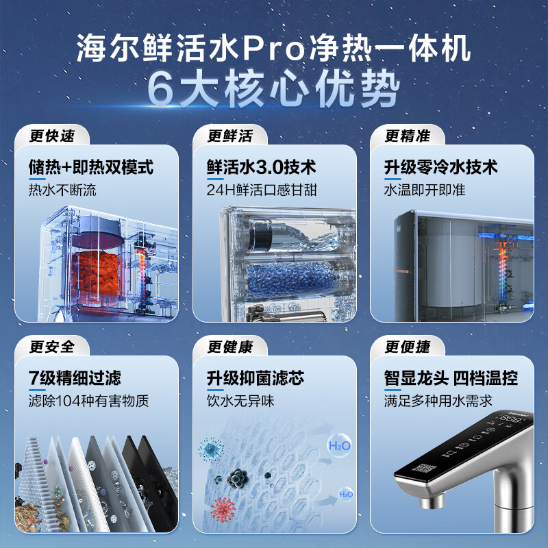 海尔(Haier)鲜活水pro净热一体加热净水器即热零冷水净水器+前置过滤器HKC1560-R995D2HU1+HQZ60-HFAZ26价格:3699.00元!