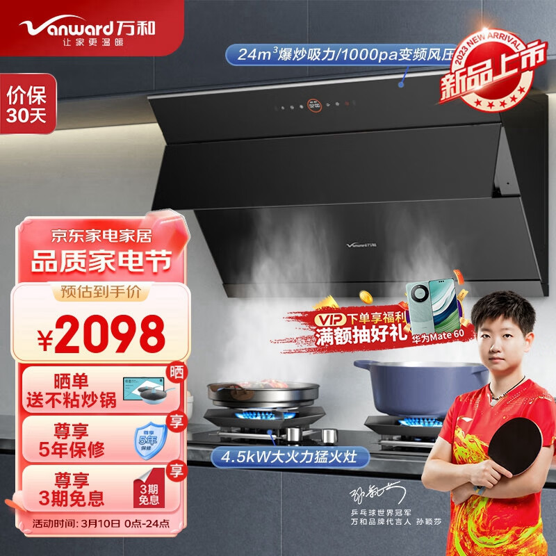 万和(Vanward)侧吸式家用抽油烟机 燃气灶具烟灶套装 24风量 直流变频大风压烟灶套装 WJ920+C5L90S(液化气)价格:2098.00元!