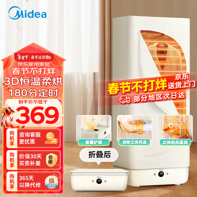 美的(Midea)烘干机家用小型风干机 家用定时收纳便携可折叠布罩类烘干衣柜烘衣机衣物护理机干衣机MHJ70-03ZL价格:410.00元!