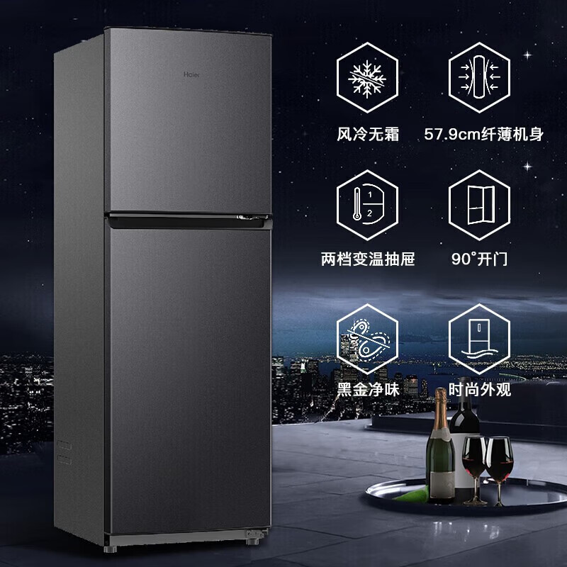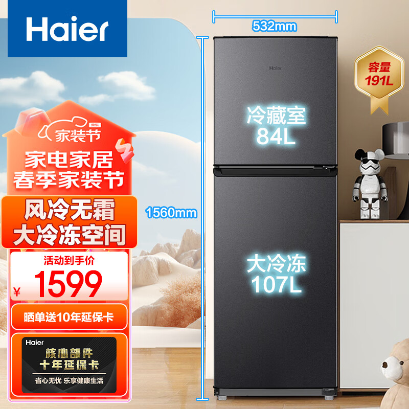 海尔冰箱双门风冷无霜大冷冻小型家用两门电冰箱超薄宿舍小冰箱BCD-191WGHC2Z0S9[家电]价格:1599.00元!