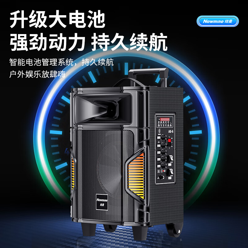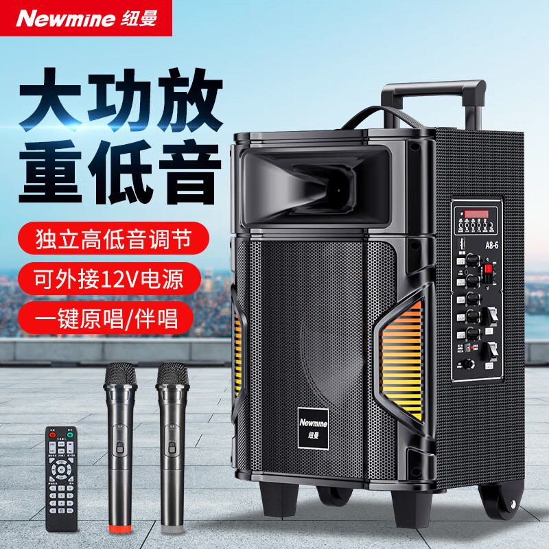 纽曼A8 广场舞音响户外大音量移动便携式家用拉杆蓝牙音箱大功率扩音器地摊摆摊喇叭双麦版价格:399.00元!