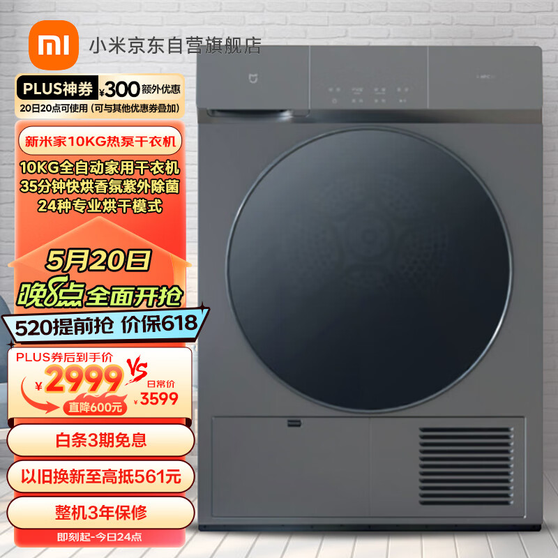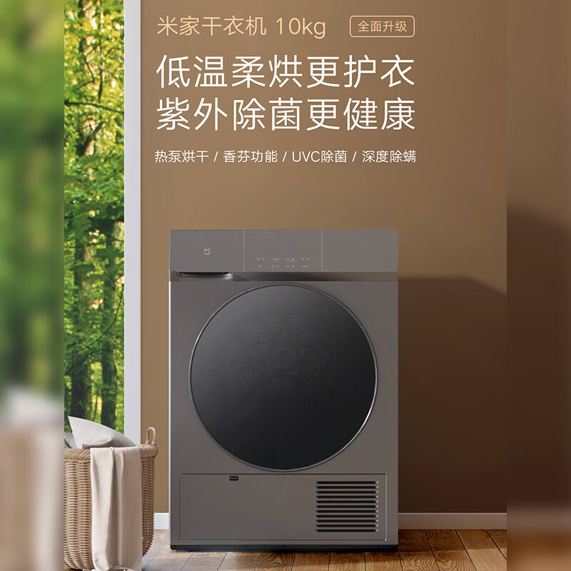 米家小米热泵式烘干机 10公斤全自动家用干衣机洗衣机伴侣 30分钟快烘香氛 紫外除菌 H100MJ102S价格:3299.00元!