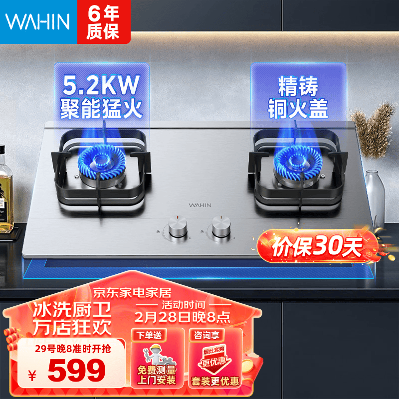 美的(Midea)铜火盖不锈钢灶具家用5.2kw大火力猛火灶燃气灶双灶天然气灶 双眼灶煤气灶双灶台嵌两用聚能灶炉灶 美的出品WAHIN台式嵌入式两用台灶 (液化气灶4.6kw)价格:599.00元!